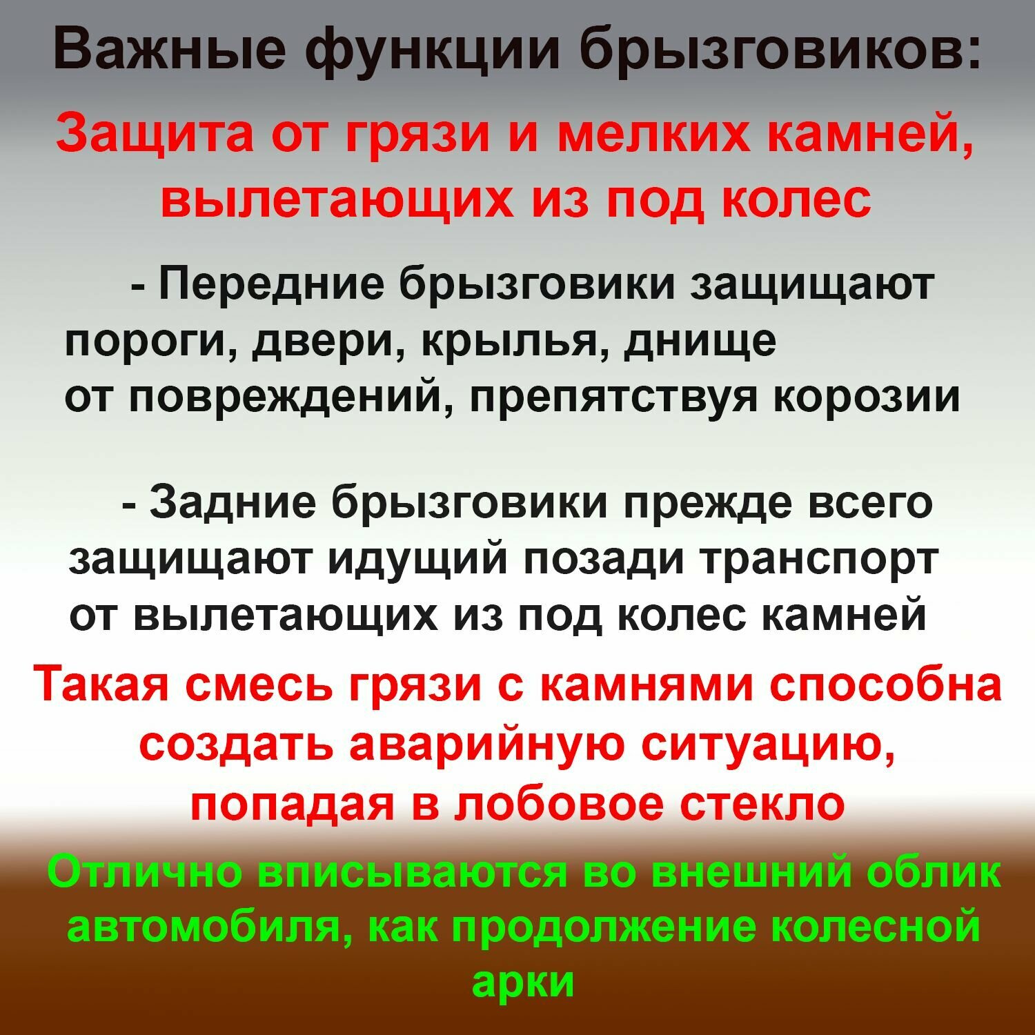 Предотвращает вылетание брызг, щебня, снега из под колес