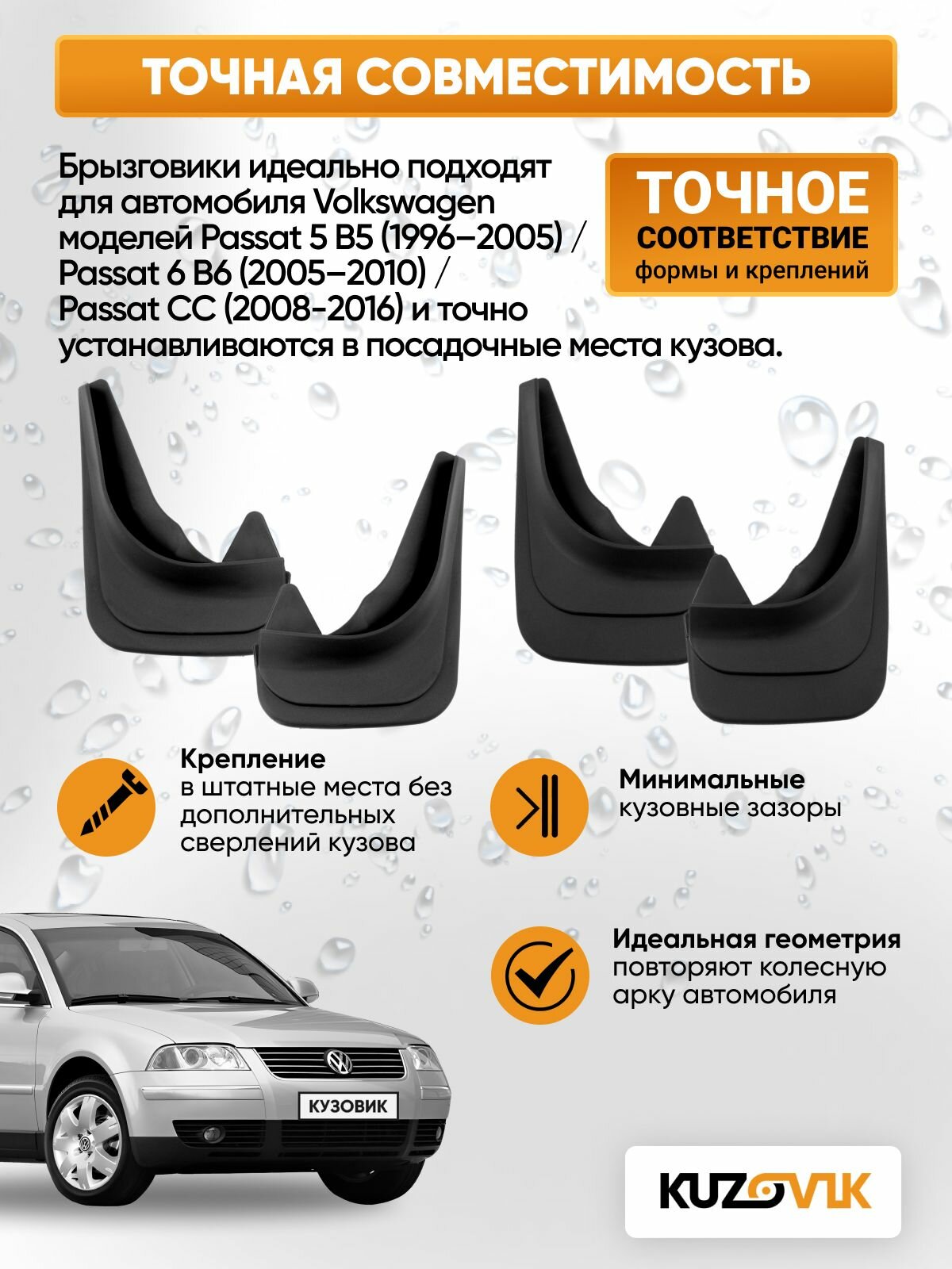Брызговики для Фольксваген Пассат Volkswagen Passat 5 B5 (1996-2005) / Volkswagen Passat 6 B6 (2005-2010) / CC (2008-2016) передние + задние резиновые комплект 4 штуки: сравнение цен, характеристики, фото, актуальное наличие и цены.