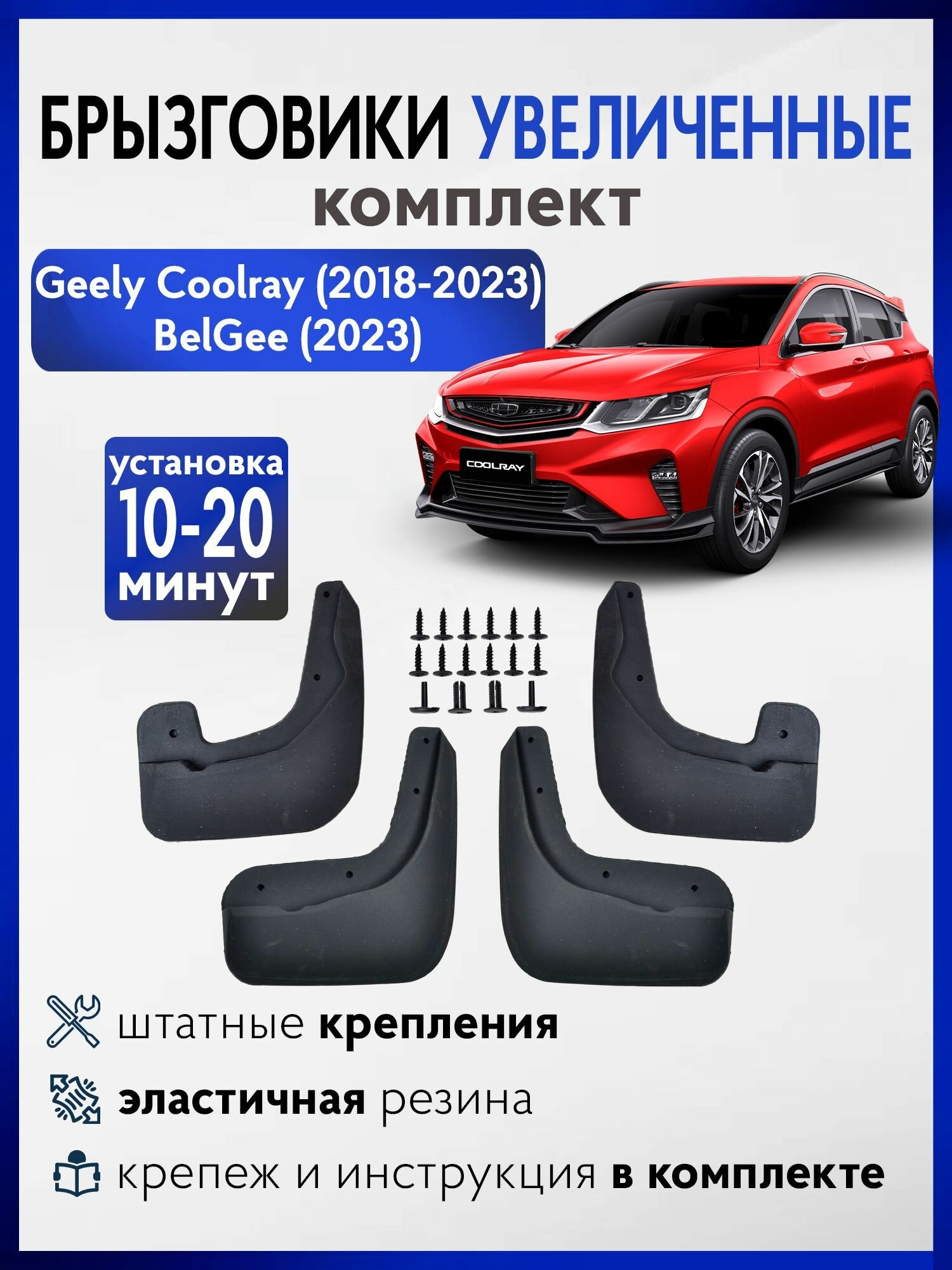 Купить Брызговики для Geely Coolray, Belgee x50 (2018-2023), передние и задние комплект из 4 шт увеличенные с доставкой по всей России.
