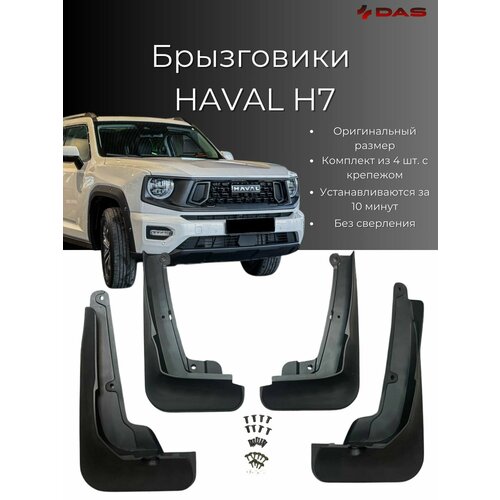 Комплект брызговиков Haval H7 состоит из двух передних и двух задних брызговиков, которые обеспечивают максимальную защиту вашего автомобиля. Кроме того, в комплект входит крепежная фурнитура и инструкция по установке.