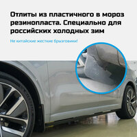 Изготовлены из термоэластопласта, эти брызговики обладают высокой прочностью и устойчивостью к перепадам температур. Пластичность материала позволяет изделию сохранять внешний вид при наезде на препятствия.
