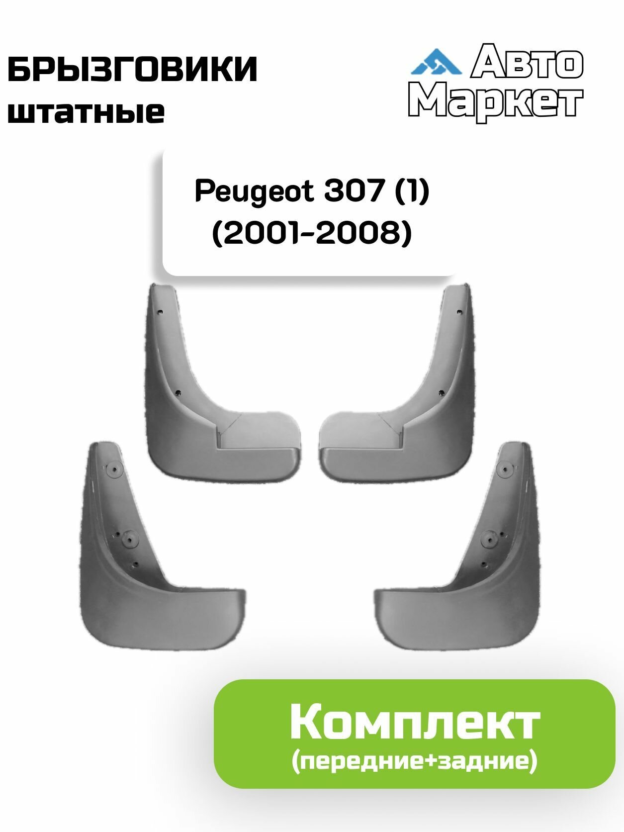 Купить Брызговики штатные для Peugeot 307 (1) (2001 2002 2003 2004 2005 2006 2007 2008) — комплект с доставкой по всей России.