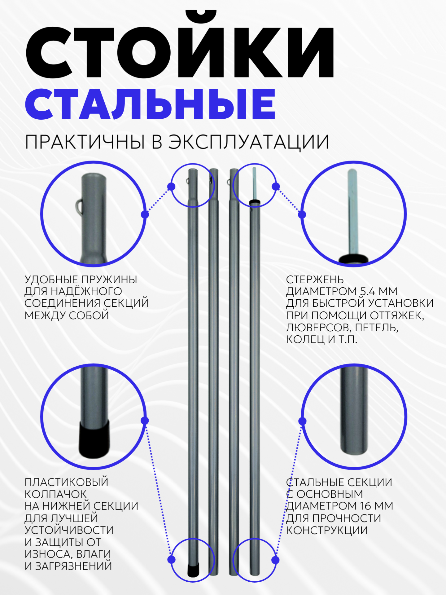 Комплект стальных стоек для палатки, шатра или тента (диаметр 16 мм, длина 230 см, 2 шт.): сравнение цен, характеристики, фото, актуальное наличие и цены.