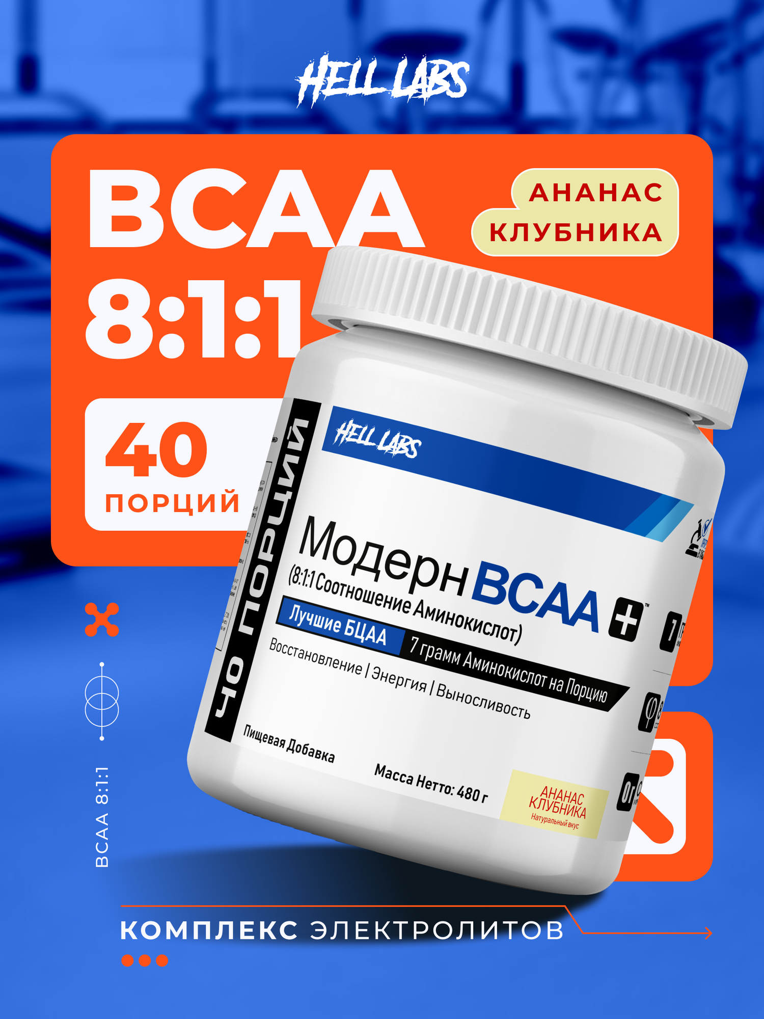(3 Банки) Hell Labs Modern BCAA, Supreme 8:1:1 аминокислоты комплекс + электролиты 480 г (Ананас-Клубника): сравнение цен, характеристики, фото, актуальное наличие и цены.