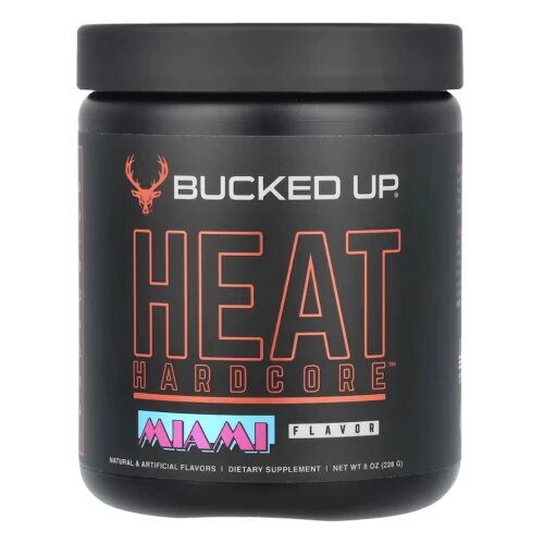 BUCKED UP, HEAT Hardcore, PREMIUM жиросжигатель, вкус Miami (клубника, манго, ананас), 228 г (30 порций): сравнение цен, характеристики, фото, актуальное наличие и цены.