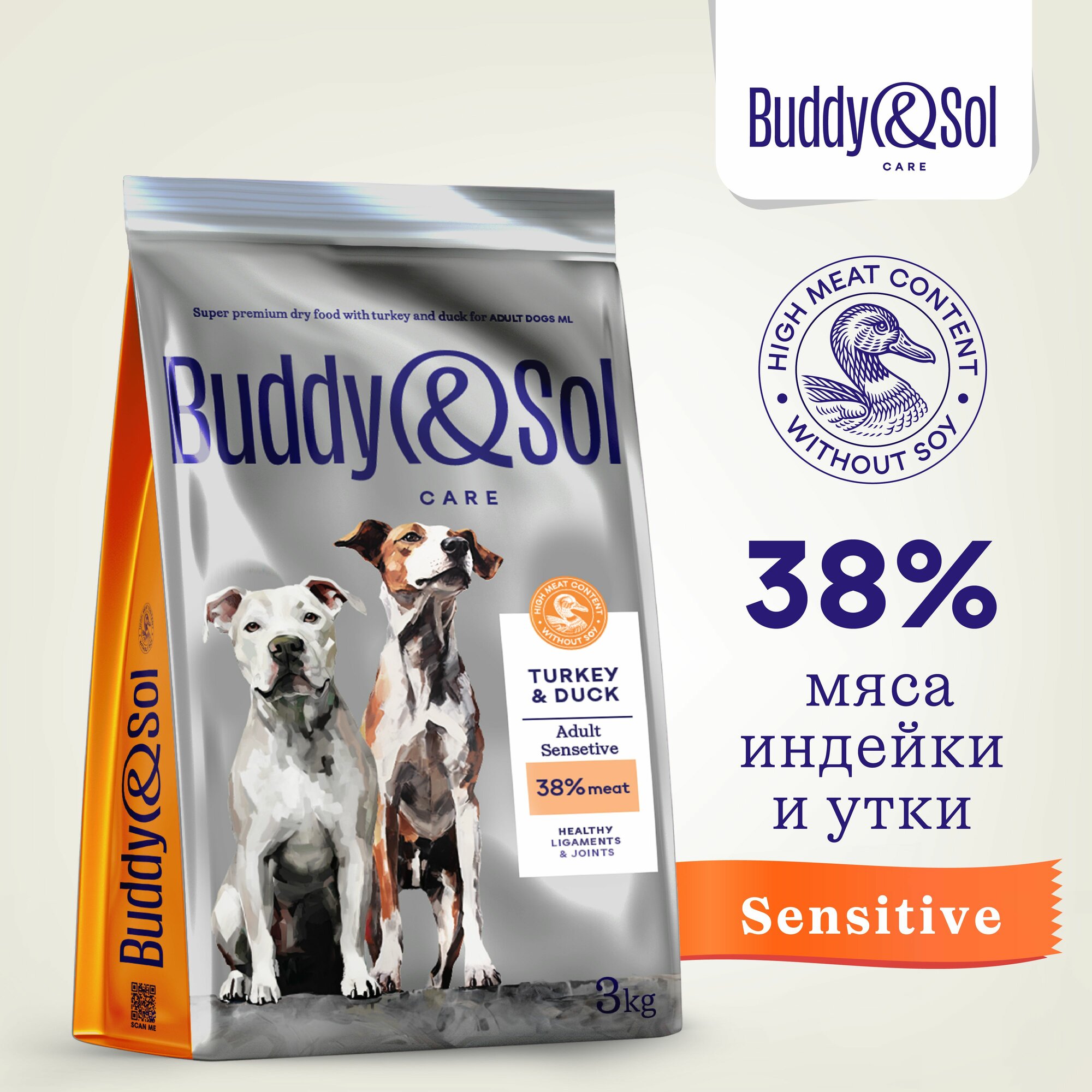 Buddy&Sol Care Sensitive сухой корм для взрослых собак с чувствительным пищеварением с индейкой и уткой — 3 кг: сравнение цен, характеристики, фото, актуальное наличие и цены.