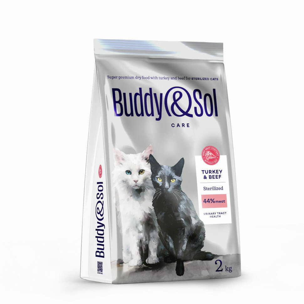 Buddy&Sol Care Sterilized сухой корм для взрослых стерилизованных кошек с индейкой и говядиной — 2 кг