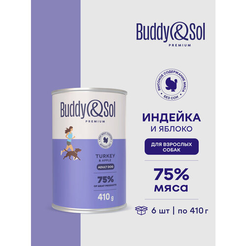Купить Buddy&Sol PREMIUM Влажный корм для собак всех пород (индейка с яблоком), 6 шт. по 410 г с доставкой по всей России. Buddy&Sol PREMIUM Влажный корм для собак всех пород (индейка с яблоком), 6 шт. по 410 г: сравнение цен, характеристики, фото, актуальное наличие и цены.