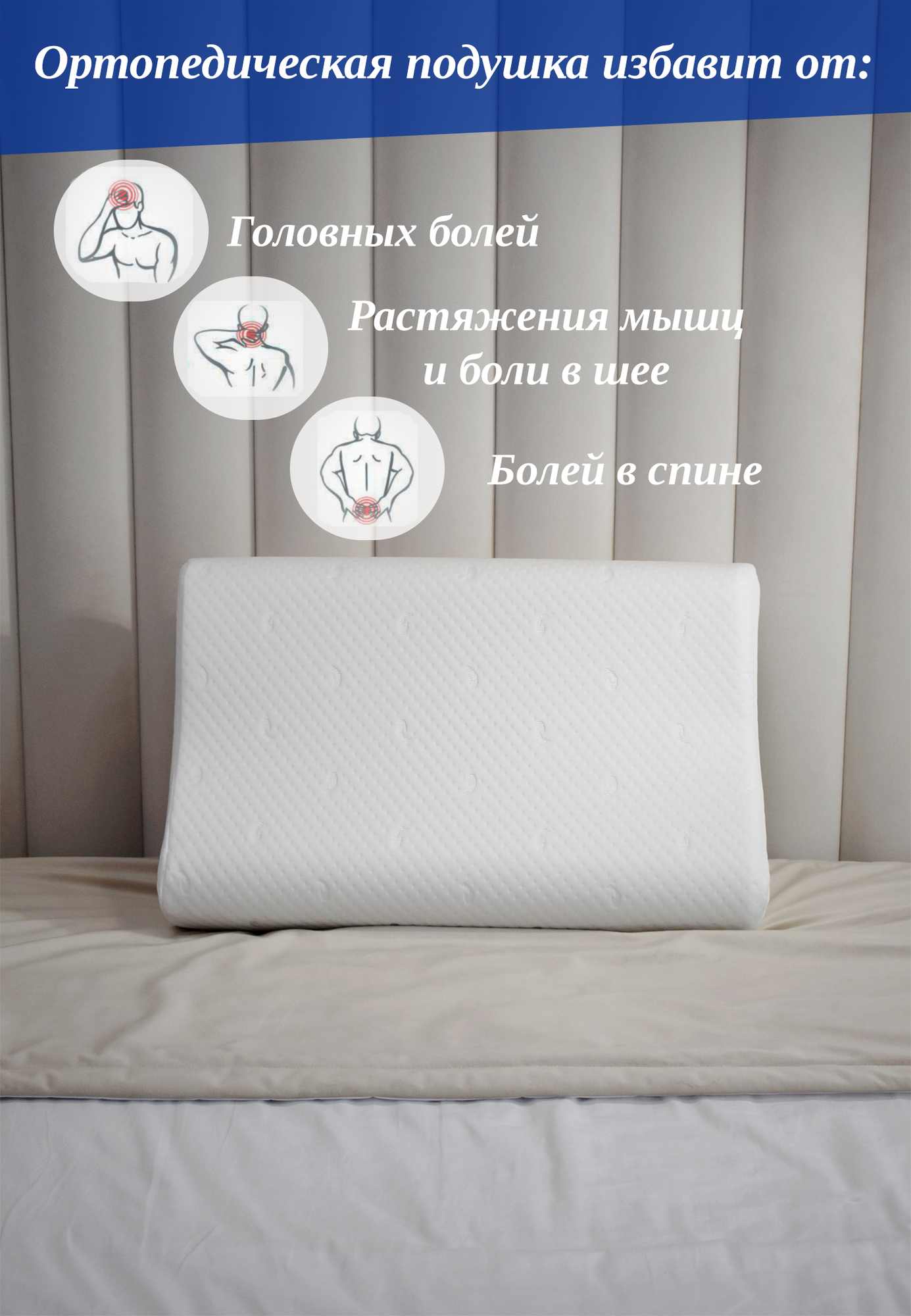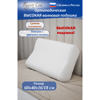 Ортопедическая подушка «Будет Сон» серии Волновая с эффектом памяти с двумя валиками размером 16 и 18 см. Ее удобный размер 40 х 60 см и специальная форма обеспечивают оптимальную поддержку головы и шеи во время сна. Благодаря оптимальному размеру отлично подходит как мужчинам так и женщинам.