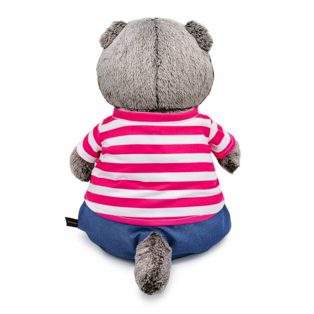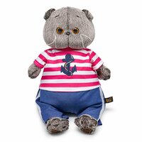 Сразу видно, что Котик Басик только что вернулся из морского круиза! Штанишки с лампасами и полосатая футболка с якорем - прямое доказательство того, что ушастый путешественник полон впечатлений и готов еще долго вспоминать приключение. Но по упитанному животику и пухлым щечкам можно предположить, что Басик интересовался не только морскими пейзажами, но и кухней на судне: скажем по секрету, Кот Басик не пропустил ни одного ужина! Ничего страшного: активная жизнь на суше среди мягких игрушек и друзей быстро приведет его в форму!