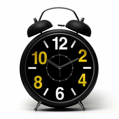 Артикул: 0920-705. Размеры: 30 x 23 x 8 см, Материал: Металл, Пластик, Стекло, Диаметр: 23 см, Вес: 1000 гр, Размер упаковки: 24 x 31 x 8.5 см, Свет: Да, Типоразмер батареек: AA (LR6), Цвет: Чёрный, Тип питания: От батареек, Тематика праздника: Универсальная тематика, Ход стрелок: Дискретный, Форма: Круглая, Высота, см: 30, Ширина, см: 23, Тип индикации: Арабские цифры, Цвет корпуса: Чёрный, Тип механизма: Кварцевый, Цвет циферблата: Чёрный. ОсобенностиБудильник оснащён кварцевым механизмом с дискретным ходом стрелок. Контрастный циферблат с арабскими цифрами хорошо читается. Удобная кнопка подсветки.