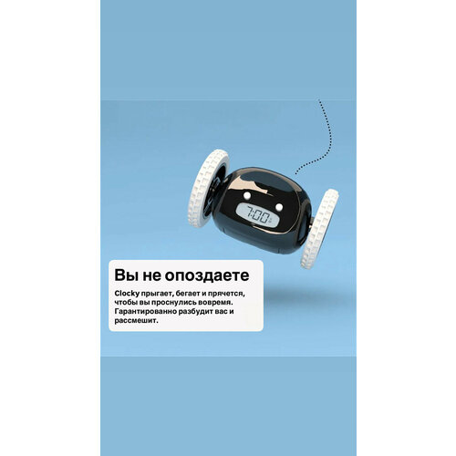 Будильник оснащен бегущими часами на колесах, которые гарантируют своевременное пробуждение. Он прыгает с тумбочки, катается и вибрирует, создавая игривые движения, которые помогут вам проснуться помолодевшим и полным энергии.