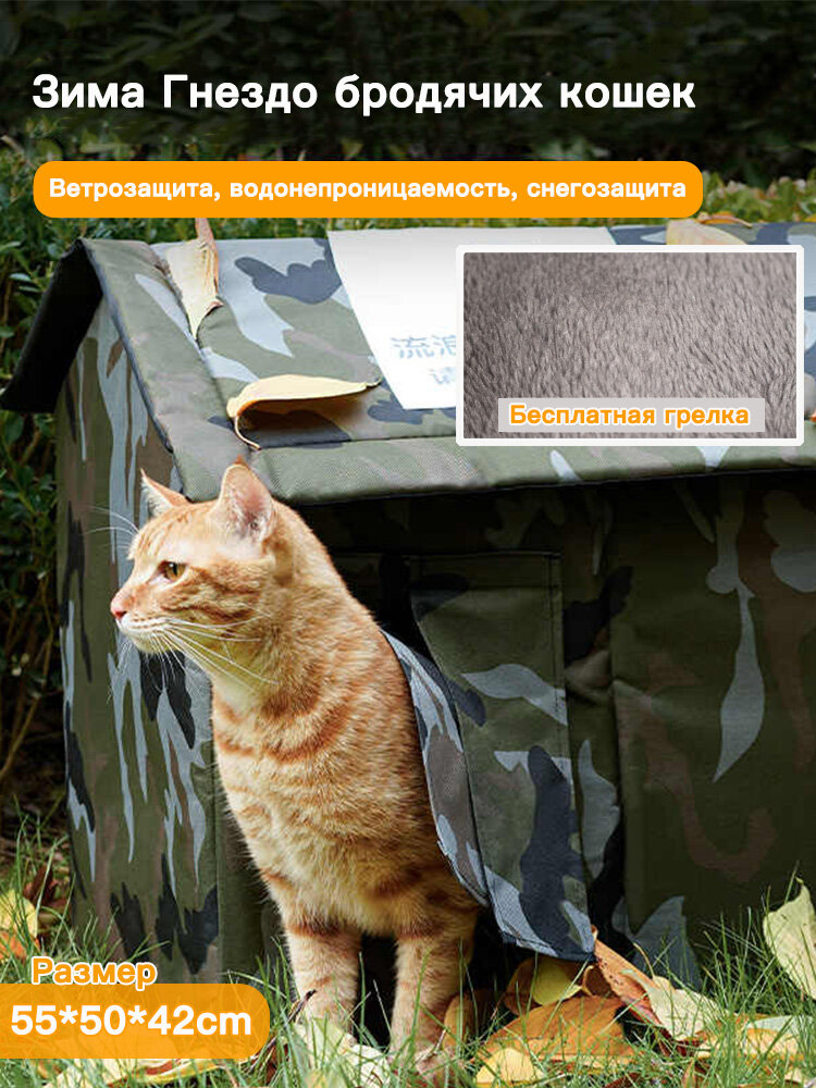Будка для кошек уличная утепленная зимняя, Домик для кошки, лежанка для кошек, камуфляжный рисунок, Размер 550*500*420 мм: сравнение цен, характеристики, фото, актуальное наличие и цены.