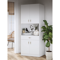 Угловая конструкция и размеры Буфет имеет угловую конструкцию, что позволяет использовать его для размещения микроволновой печи или другой крупной бытовой техники.