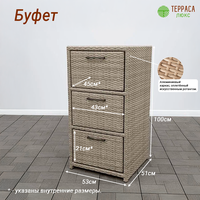 Буфет с 3 ящиками, плетенный из искусственного ротанга, напольный, бежевый, 52х51х100см: сравнение цен, характеристики, фото, актуальное наличие и цены.