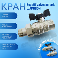 Кран Американка Н/В Ду-20 /1/2" Бабочка черная Bugatti OREGON 3220032 - шаровая, полнопроходная запорная арматура с внутренней и наружной резьбой (соединитель с накидной гайкой).