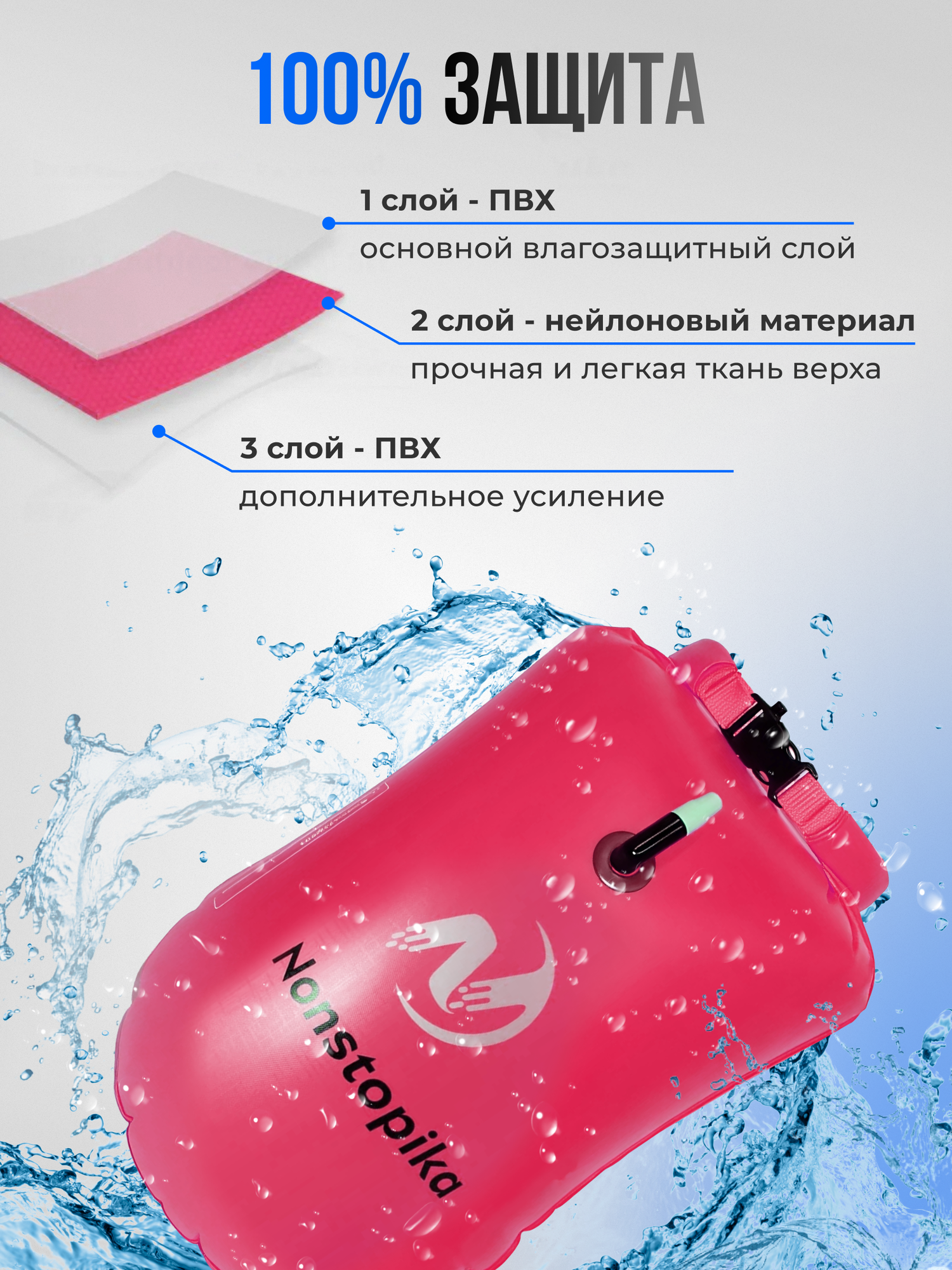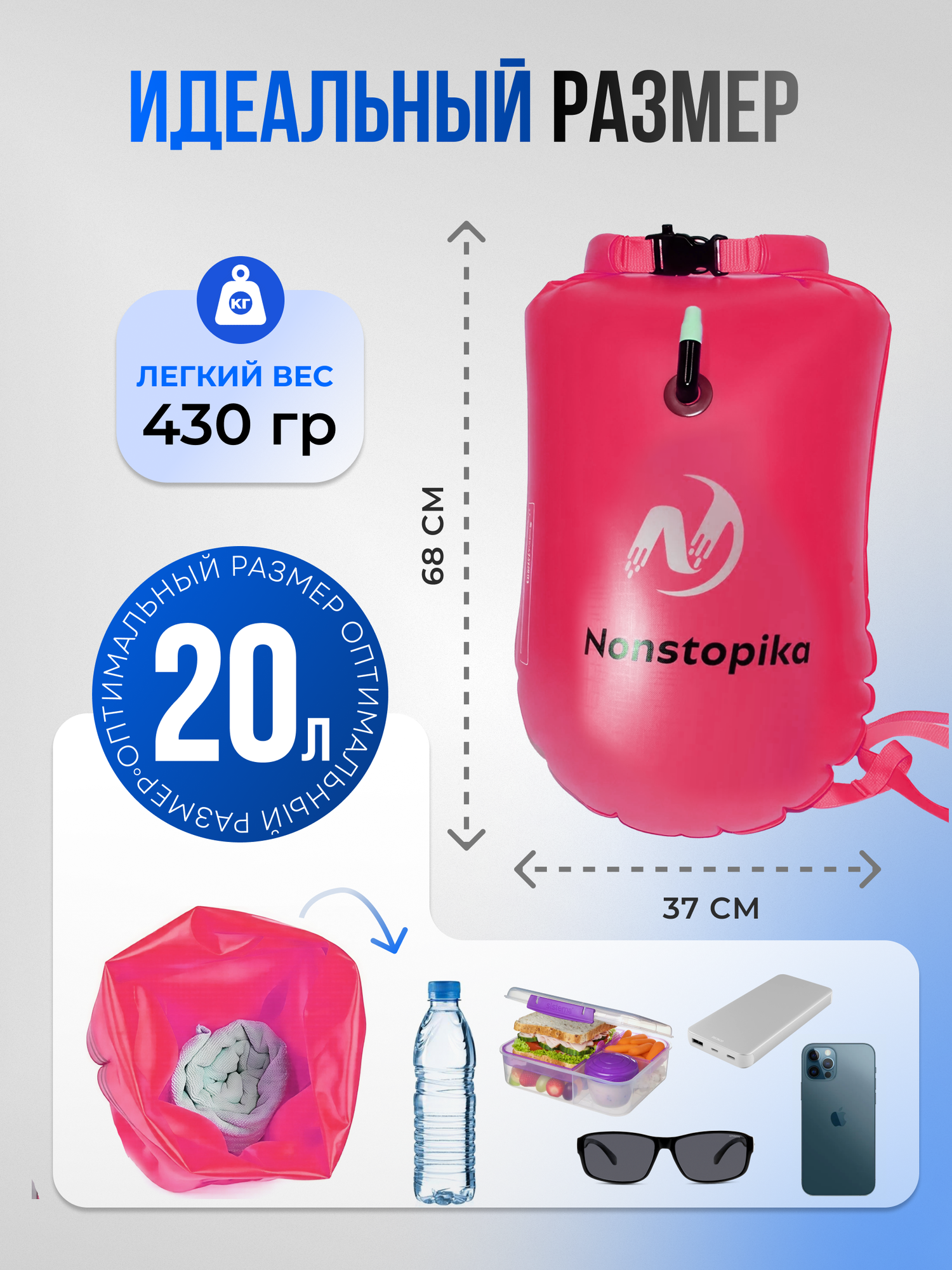 Купить Буй Nonstopika для безопасного плавания 20 литров для сапборда цвет розовый с доставкой по всей России.