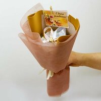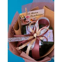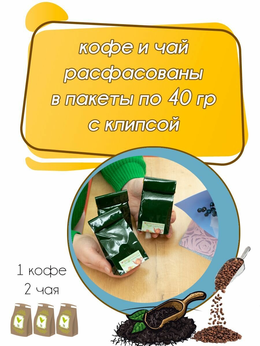 2 вида чая по 40 гр. Зерновой кофе 40 гр. Размер букета 17*40 см