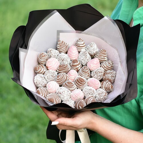 Букет из клубники в белом и молочном шоколаде «Candy», для любимой девушки, мамы, коллеги, сестры, жены, подруги, 24-35 шт: сравнение цен, характеристики, фото, актуальное наличие и цены.