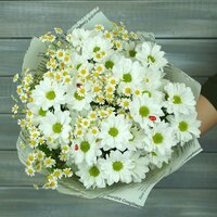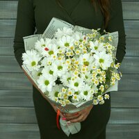 Купить Букет «Букет Маркет», из ромашек, хризантем, танацетума, обертка, высота 58 см с доставкой по всей России.