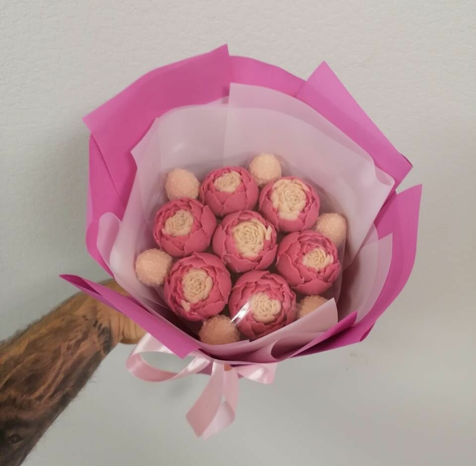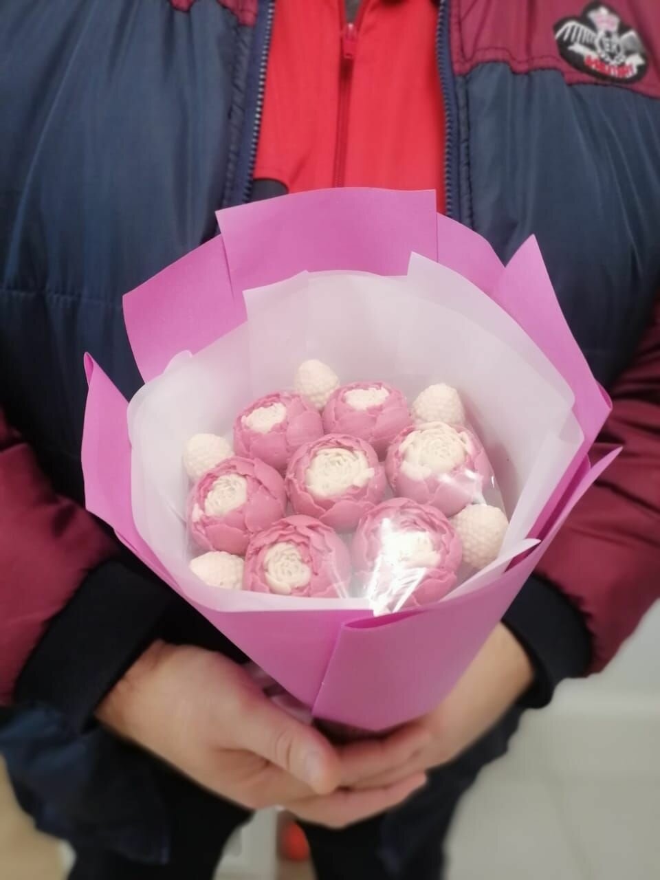 Купить Букет из шоколадных пионов Первая Букетная ShokoTrendy , белый шоколад, ванилин, 245г с доставкой по всей России.