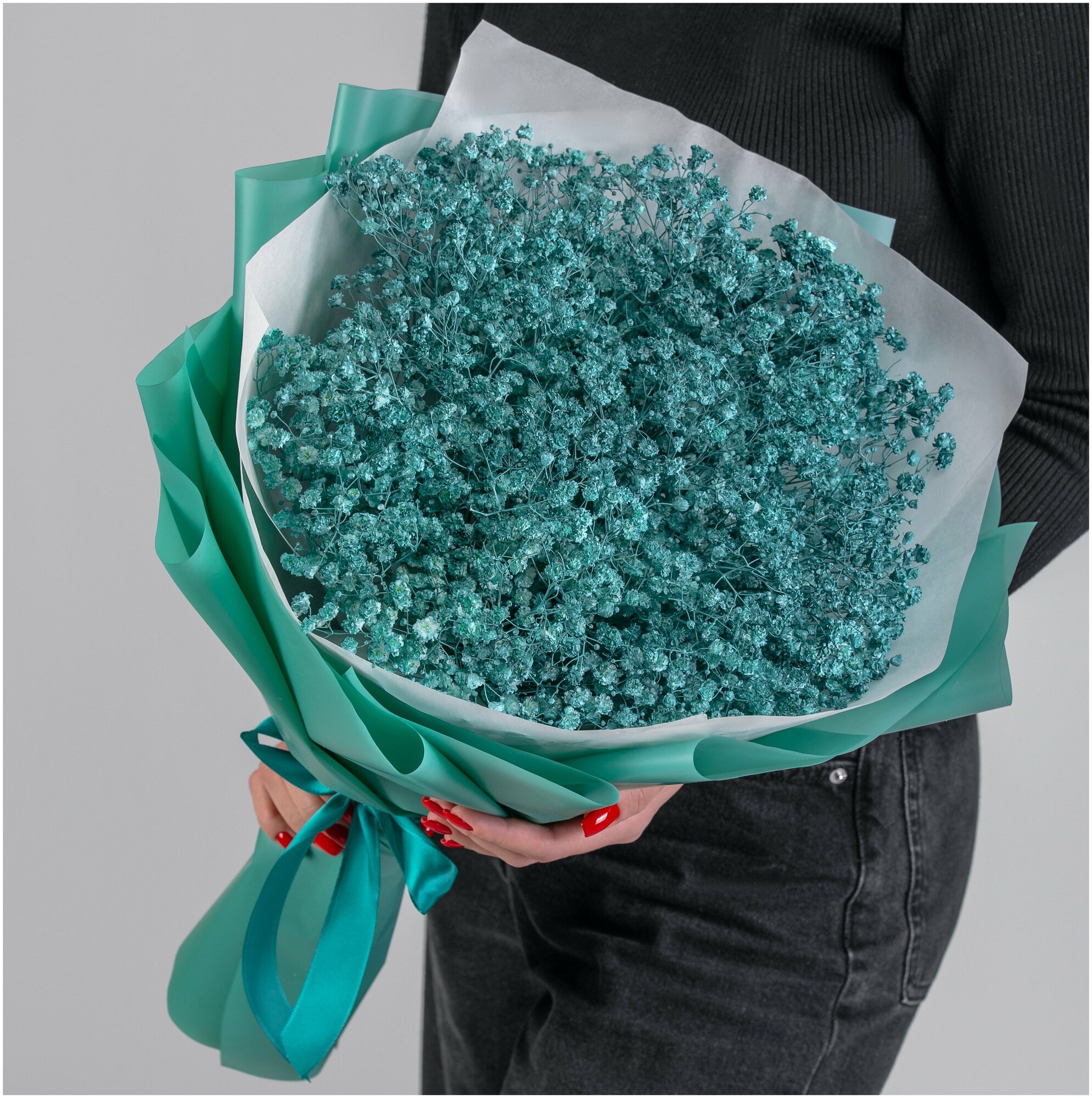 Букет Мегацвет24 "Бирюзовые Гипсофилы", стабилизированный, 15шт, дизайнерская упаковка