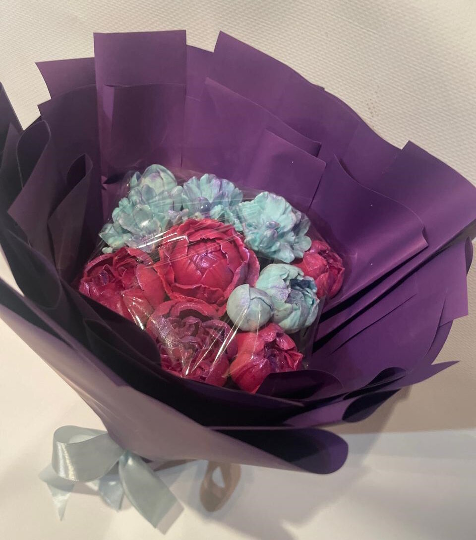 Букет из шоколадных пионов и гортензий ShokoTrendy - это изысканный и оригинальный подарок, который придется по вкусу каждому. Букет состоит из 11 шоколадных фигурок пионов и гортензий, выполненных из белого шоколада. Это придает букету неповторимый вкус и аромат, а также делает его визуально привлекательным. Вес упаковки составляет 400 грамм, что позволяет насладиться вкусом шоколада в полной мере. Размер букета по краям упаковки: 20 см шириной, 35 см высотой, вес букета +-400 гр. В составе букета нет ГМО, что делает его безопасным для здоровья. Энергетическая ценность на 100 грамм продукта составляет 520 ккал, содержание белков - 11 грамм, жиров - 31 грамм, углеводов - 50 грамм. Букет из шоколадных пионов и гортензий ShokoTrendy - это не просто подарок, это символ любви, заботы и внимания.