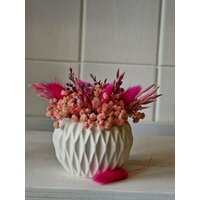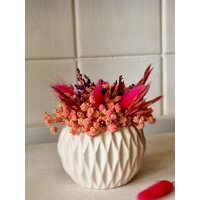 Букет цветов стабилизированных "Ноктюрн" в белом кашпо с рифлеными гранями - это изысканный и стильный элемент декора, который станет прекрасным подарком для любого случая.