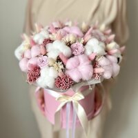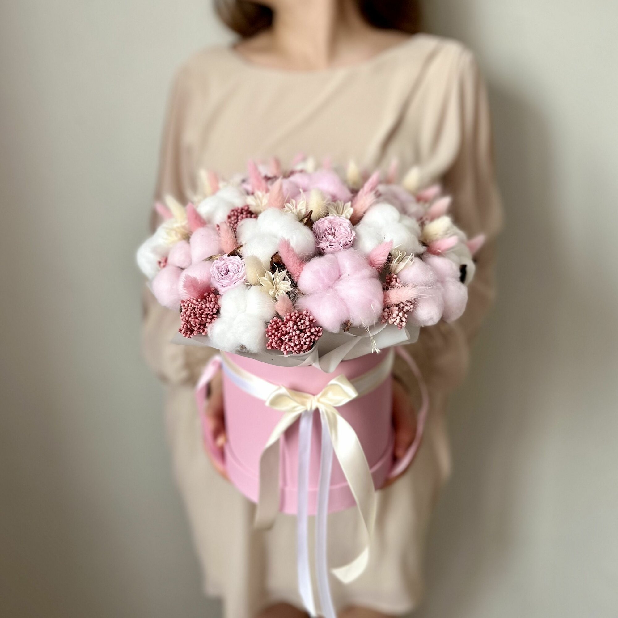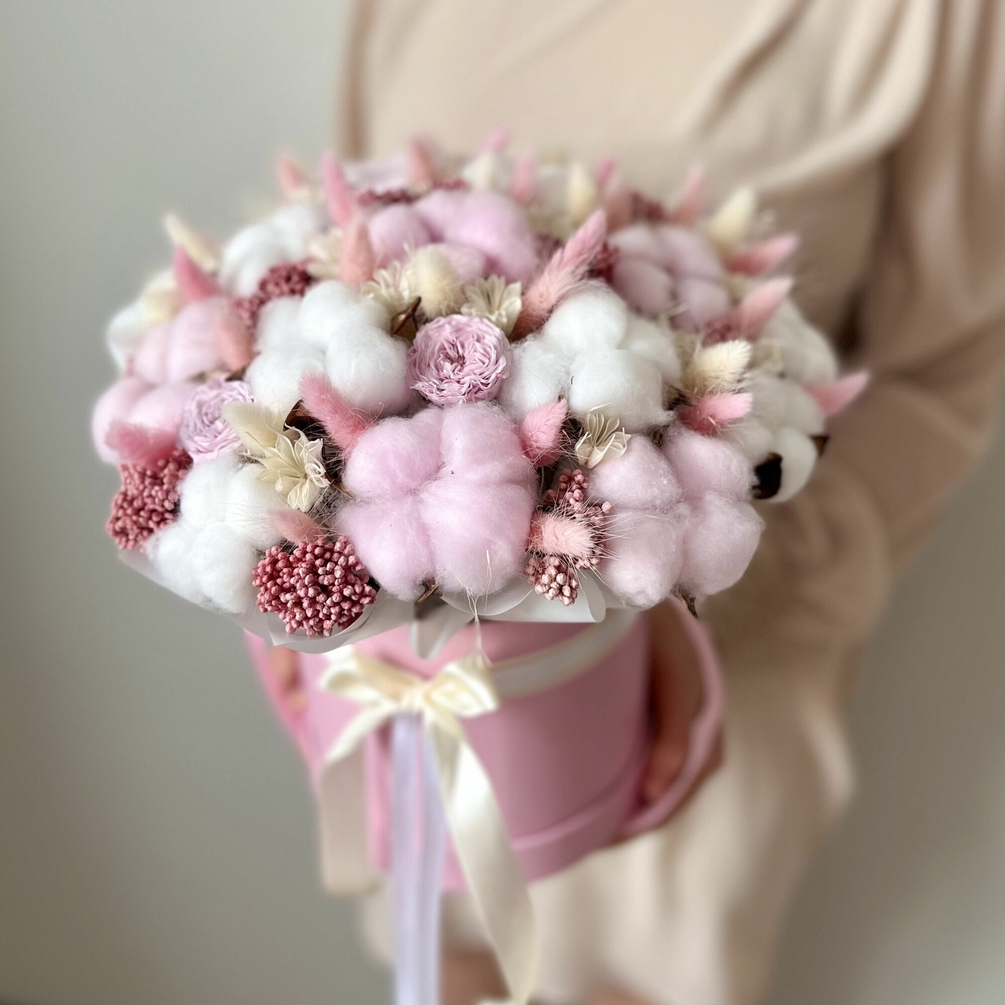 Купить Букет «Вечная Любовь», стабилизированные цветы и сухоцветы, пионовидная роза, 30х30 см с доставкой по всей России.