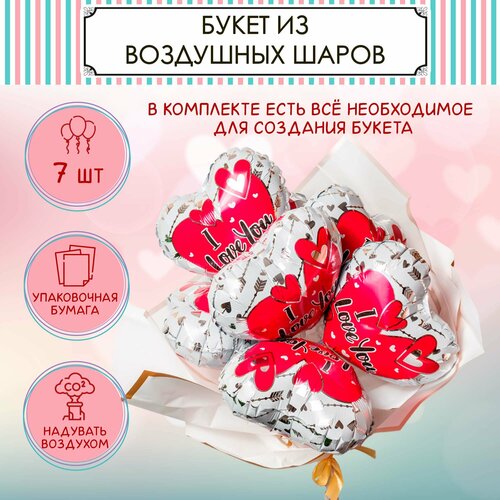 Необычный букет из фольгированных шариков - очень крутое дополнение к подарку ! Воздушные шарики в букете - отличный подарок, который запомнится любой девочке, девушке , женщине надолго. Отличная альтернатива цветам, ведь он будет стоять долго и напоминать владелице о чувствах дарителя! Набор шаров Сердца включает в себя шары, упаковочную бумагу и палочки, чтобы создать самостоятельно букет.