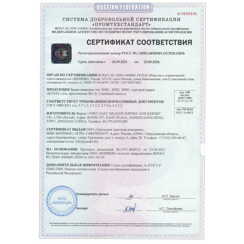 Замок обладает длительным сроком эксплуатации. Гарантийный срок 5 лет