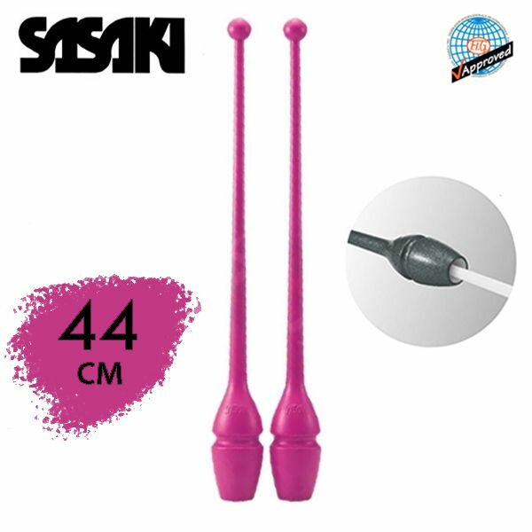 Булавы SASAKI 44см. Двойная система фиксации: легкая фиксация - для быстрого движения, сильная фиксация - для динамического движения. Предметы Sasaki признаны лучшими в мире, с ними легко учиться новичкам и работать профессиональным гимнасткам - проверено годами! Резиновые булавы SASAKI состоят из стекловолоконной основы, которая придает им прочности и уританового покрытия сверху, которое, как и литая форма, сокращает возможность появления трещин и расколов и содействует динамичным броскам во время выступления. Булава, если вытянуть её вдоль руки, держа в кисти за маленькую головку, должна доходить до середины плеча так, чтобы было удобно её держать и выполнять различные вращения булавой. Булава не должна касаться носа или подбородка. Хранить булавы необходимо в специальном чехле. Чехол для булав поможет сохранить булавы в чистоте и защитить от возможных царапин в сумке. Булавы можно украсить при помощи разноцветных Обмоток. Существует большой выбор клейких обмоток самых разных цветов и оттенков, из которых вырезаются узоры и наклеиваются на булавы.
