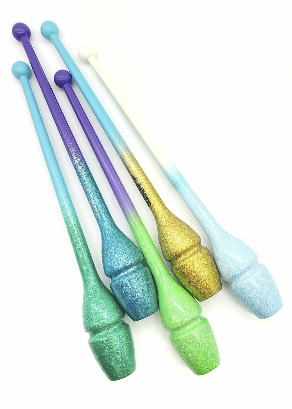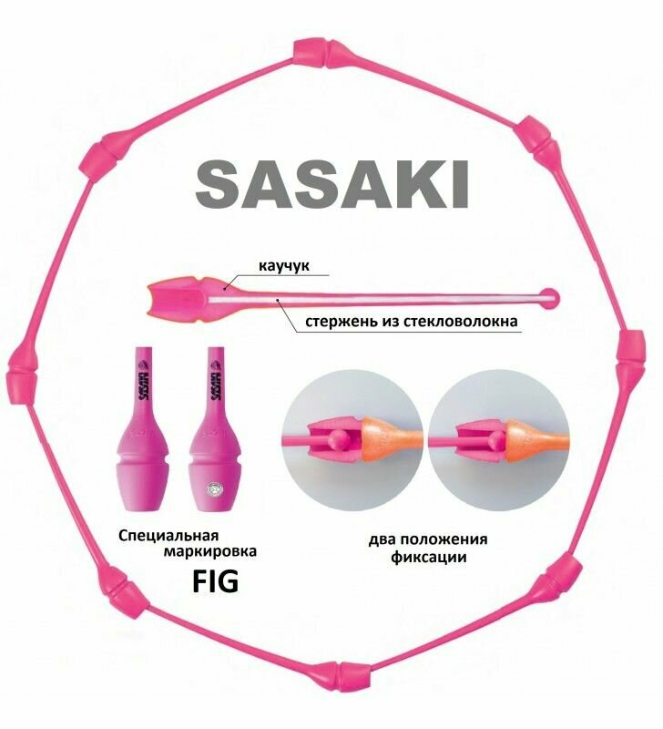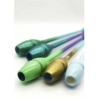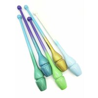 Булавы SASAKI 44см с блестящим напылением. Двойная система фиксации: легкая фиксация - для быстрого движения, сильная фиксация - для динамического движения. Предметы Sasaki признаны лучшими в мире, с ними легко учиться новичкам и работать профессиональным гимнасткам - проверено годами! Резиновые булавы SASAKI состоят из стекловолоконной основы, которая придает им прочности и уританового покрытия сверху, которое, как и литая форма, сокращает возможность появления трещин и расколов и содействует динамичным броскам во время выступления. Булава, если вытянуть её вдоль руки, держа в кисти за маленькую головку, должна доходить до середины плеча так, чтобы было удобно её держать и выполнять различные вращения булавой. Булава не должна касаться носа или подбородка. Хранить булавы необходимо в специальном чехле. Чехол для булав поможет сохранить булавы в чистоте и защитить от возможных царапин в сумке. Булавы можно украсить при помощи разноцветных Обмоток. Существует большой выбор клейких обмоток самых разных цветов и оттенков, из которых вырезаются узоры и наклеиваются на булавы.