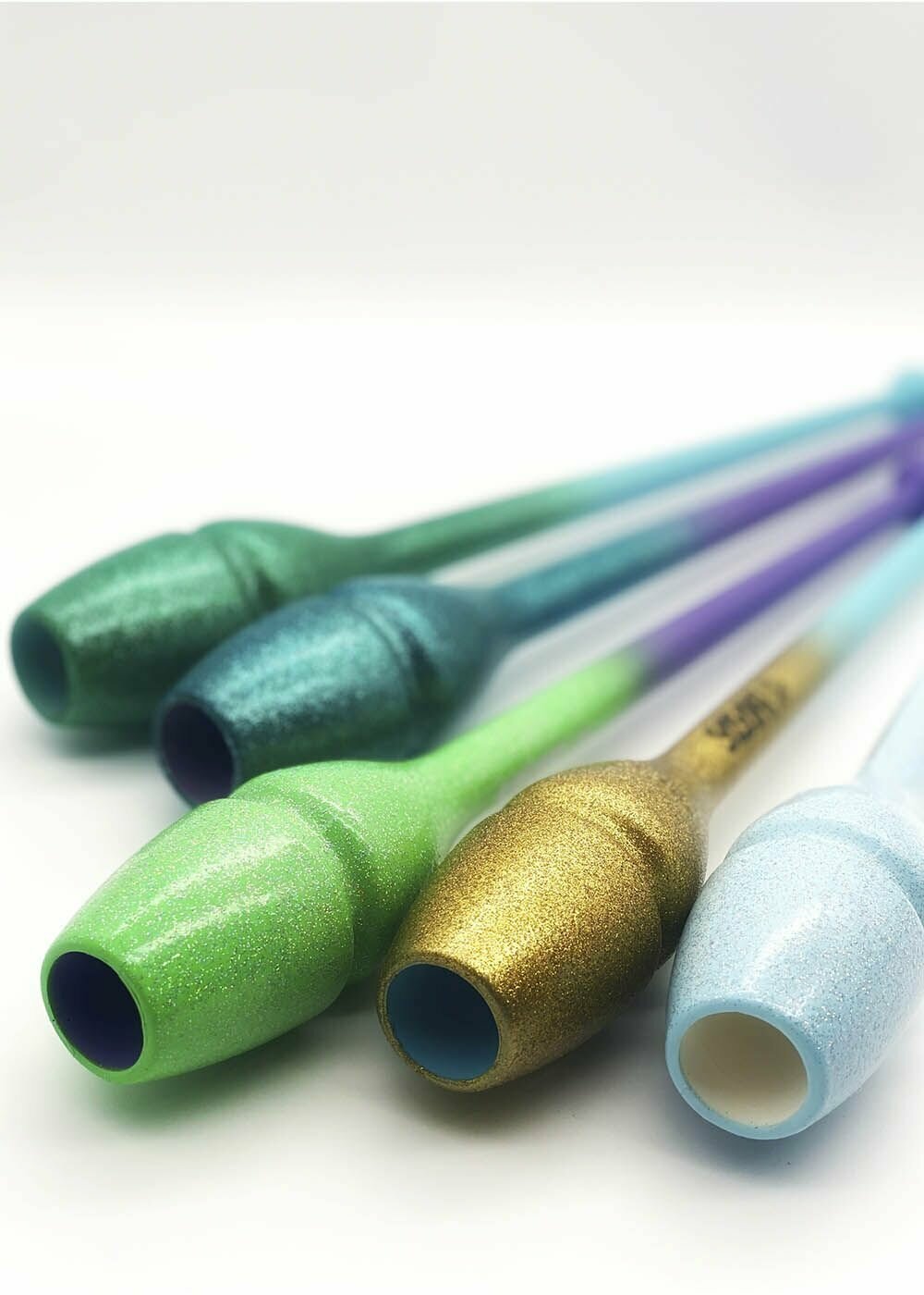 Для долговечности напыления из блесток обмотайте булавы скотчем.