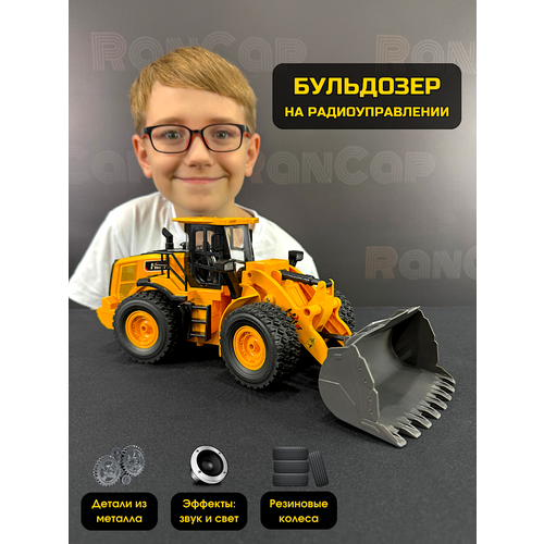 — Бульдозер на пульте управления 2.4G: стабильная связь без помех, машинка на радиоуправлении послушна и манёвренна.