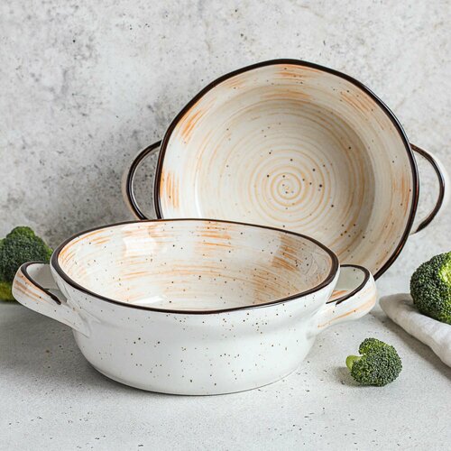 Супница с ручками набор 2 шт, серия Fusion, P.L. Proff Cuisine. Размеры: диаметр - 15 см, внутренний диаметр 13 см, полный объем блюда - 600 мл, полезный объем - 400 мл (визуально как 2 чашки для чая). В обеденной тарелке с ручками красиво можно подать салат, порционные блюда, мюсли на завтрак, творог. Подойдет для использования в качестве салатника; ваше блюдо будет выглядеть презентабельно, если подать его в красивой салатнице. Глубокая тарелка из керамики подойдет для супа, салата, плова. В миске красиво можно подать порцию на одного. Подойдет для использования в качестве салатника; оливье, шуба, греческий салат и др. будут выглядеть презентабельно. Коллекция цветного фарфора Fusion отличается тем, что рисунок на каждом предмете серии неповторим, ведь он наносится вручную; комбинируйте предметы этой серии и соберите свой оригинальный сервиз. Тарелки супницы можно использовать в микроволновой печи и мыть в посудомоечной машине. Столовая посуда ПЛ - ресторанное качество по доступной цене. Фарфоровая посуда - полезный подарок для дома и души, для близкого человека, коллеги или для себя на каждый день. Вкусных блюд!