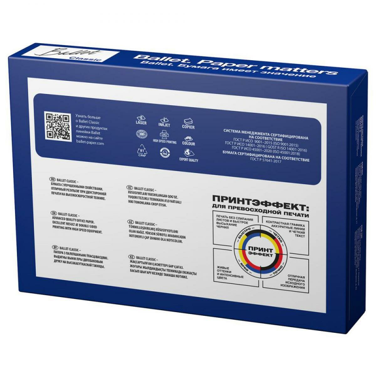 двусторонняя печать, сертифицирована по экологическим стандартам FSC и EU, соответствие ГОСТ Р 57641-2017