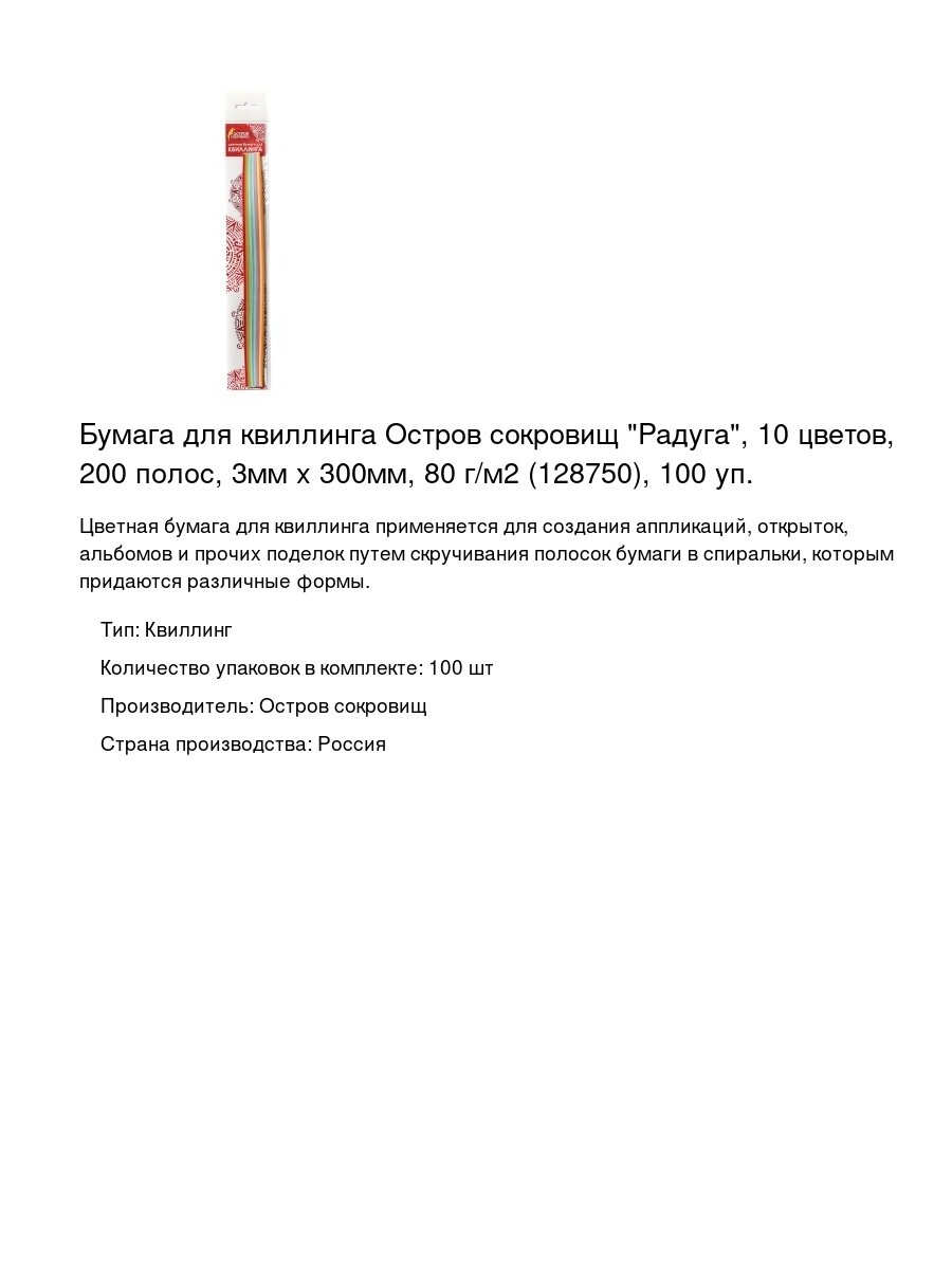 Купить Бумага для квиллинга Остров сокровищ «Радуга», 10 цветов, 200 полос, 3мм х 300мм, 80 г/м2 (128750), 100 уп. с доставкой по всей России. Бумага для квиллинга Остров сокровищ «Радуга», 10 цветов, 200 полос, 3мм х 300мм, 80 г/м2 (128750), 100 уп.: сравнение цен, характеристики, фото, актуальное наличие и цены.