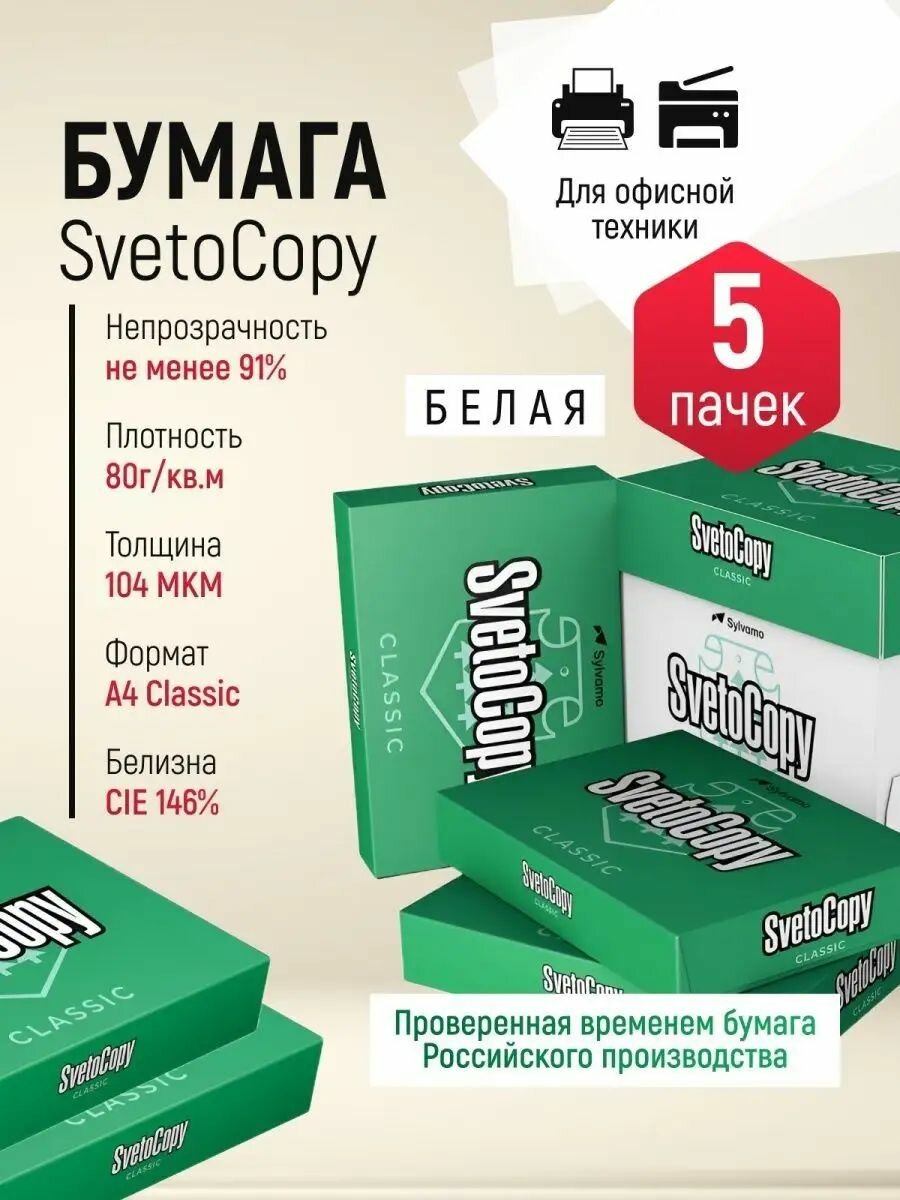 Купить Бумага офисная формата А4 для принтера и ксерокопий SvetoCopy, 2500 листов с доставкой по всей России.