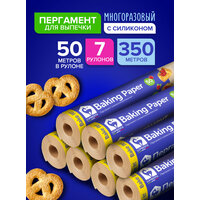 Характеристики. Длина: 350 м (7×50 м) | Ширина: 38 см | Покрытие: силиконизированное | Цвет: крафт | Многоразовый