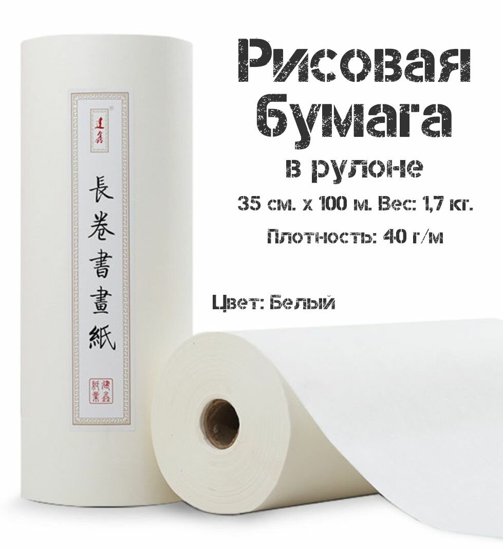 Представляем вам рисовую бумагу в рулоне, идеальную для каллиграфии и живописи. С размером 35 см в ширину и длиной 100 метров, данный продукт станет незаменимым помощником как для профессиональных художников, так и для любителей. Толщина бумаги составляет 40 г/м2, что делает её достаточно прочной для различных техник рисования, обеспечивая при этом легкость в работе.