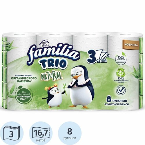 Бумага туалетная 3-слойная Familia Trio/Familia Trio Natural, белая, 16.7м, 8 рул/уп, 7 уп.: сравнение цен, характеристики, фото, актуальное наличие и цены.