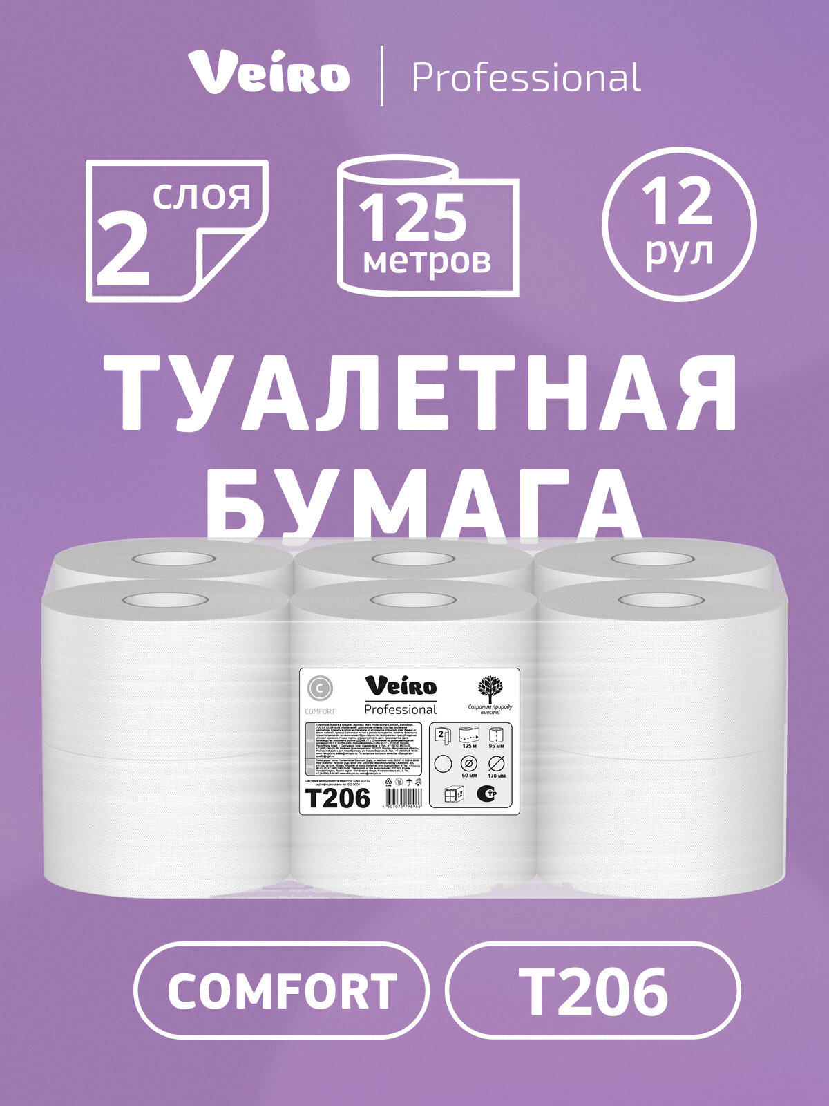 Купить Туалетная бумага Veiro Comfort, 2 слоя (12 рул х 125 м), T206 с доставкой по всей России. Туалетная бумага Veiro Comfort, 2 слоя (12 рул х 125 м), T206: сравнение цен, характеристики, фото, актуальное наличие и цены.