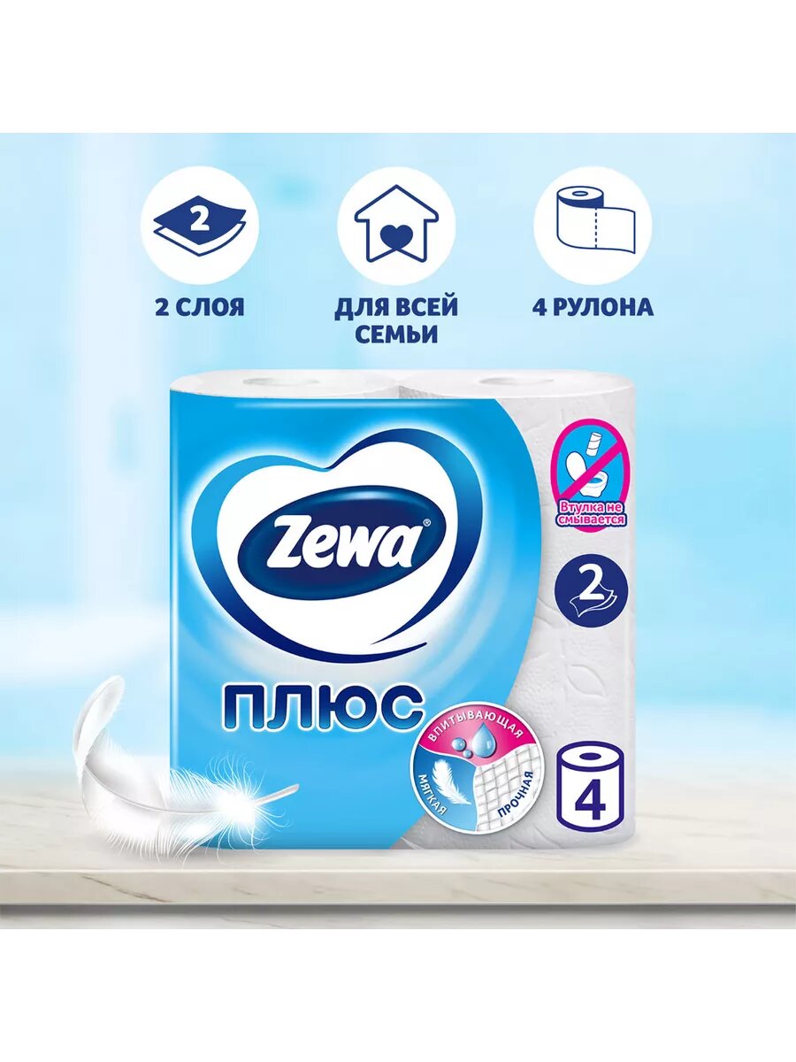 Бумага туалетная Zewa Плюс без аромата, 2-х слойная, 4 шт в упаковке, 4 уп: сравнение цен, характеристики, фото, актуальное наличие и цены.
