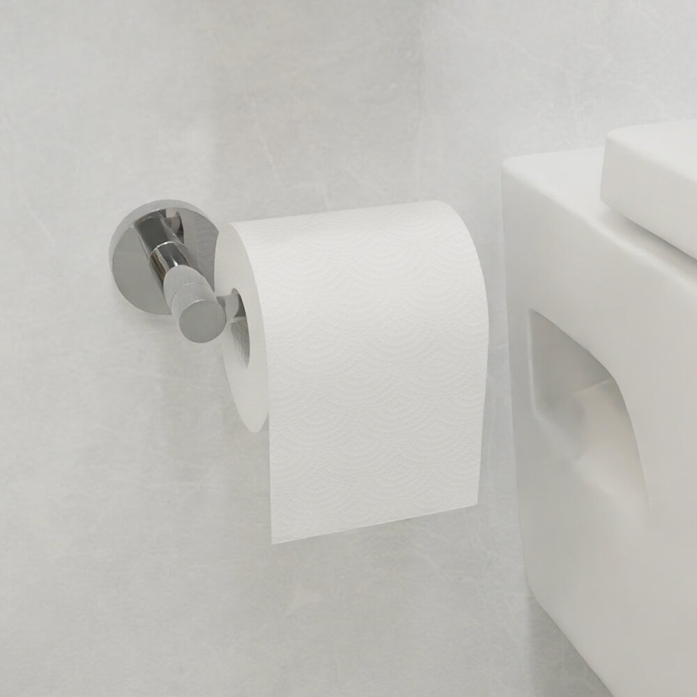 Современный и минималистичный дизайн держателя гармонично впишется в интерьер любой ванной комнаты. Хромированная сталь добавляет изысканности и подчеркивает чистоту пространства.