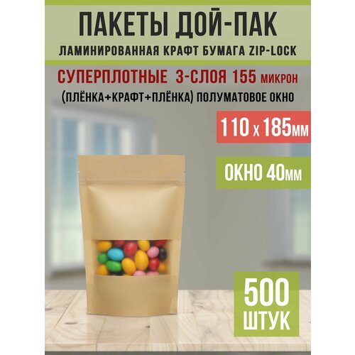 Пакеты из крафтового материала дойпак с прозрачным окошком и застежкой zip lock идеально подходят для хранения и транспортировки сыпучих, мелких пищевых продуктов.