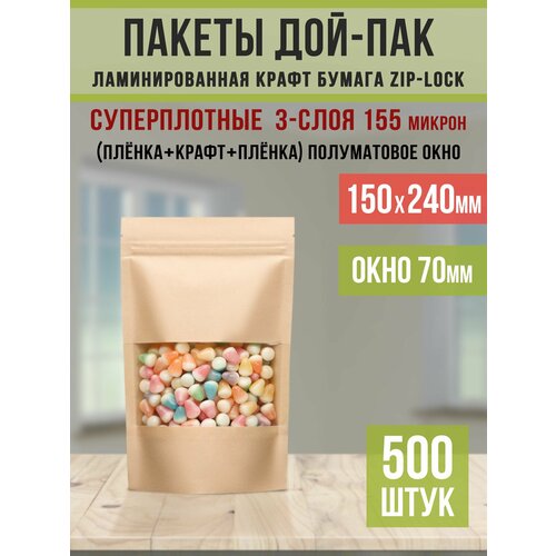 Пакеты из крафтового материала дойпак с прозрачным окошком и застежкой zip lock идеально подходят для хранения и транспортировки сыпучих, мелких пищевых продуктов.