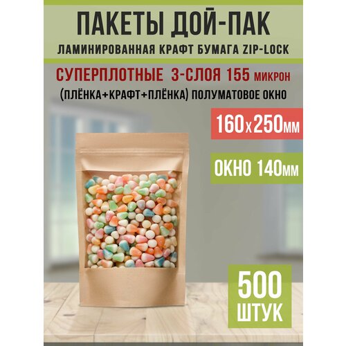Пакеты из крафтового материала дойпак с прозрачным окошком и застежкой zip lock идеально подходят для хранения и транспортировки сыпучих, мелких пищевых продуктов.