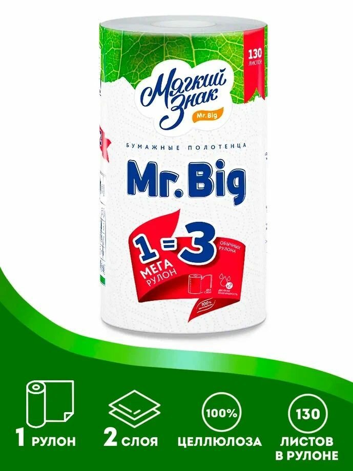 Бумажные полотенца в рулоне Мягкий знак Mr.Big, 2 сл, 32,5 м, 1 рулон, С5: сравнение цен, характеристики, фото, актуальное наличие и цены.