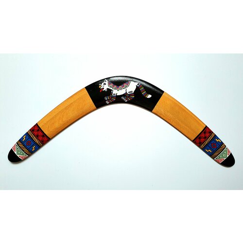 Бумеранг с изображением кота, украшенного национальным орнаментом народов Южной Америки: